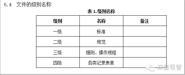 第三層次文件:管理細(xì)則、操作規(guī)程、技術(shù)標(biāo)準(zhǔn)等作為各部門運(yùn)行管理活動的常用實(shí)施細(xì)則:包括管理標(biāo)準(zhǔn)、操作流程、技術(shù)標(biāo)準(zhǔn)(國家標(biāo)準(zhǔn)、行業(yè)標(biāo)準(zhǔn)、企業(yè)標(biāo)準(zhǔn)及作業(yè)指導(dǎo)書)等;