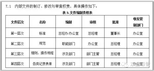 第二層次文件:本公司內(nèi)部的職能部門之間對某一活動的聯(lián)系方式的描述,有關(guān)經(jīng)營管理活動步驟的規(guī)范;