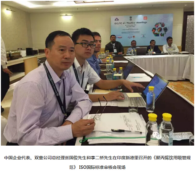 2008年7月,“雙童”在取得國家標(biāo)準(zhǔn)編制起草任務(wù)的前提下,及時向瑞士ISO標(biāo)準(zhǔn)化管理機(jī)構(gòu)申請了《聚丙烯飲用吸管規(guī)范》國際標(biāo)準(zhǔn)的起草制訂工作。通過四年時間的努力付出,瑞士ISO標(biāo)準(zhǔn)化機(jī)構(gòu)于2012年6月4日對《聚丙烯飲用吸管規(guī)范》國際標(biāo)準(zhǔn)的起草編制工作展開投票表決,來自全球124個國家和地區(qū)的標(biāo)準(zhǔn)化機(jī)構(gòu)委員參與了表決,并通過了以中國、泰國、瑞典、法國、南非五國組成的《聚丙烯飲用吸管規(guī)范》國際標(biāo)準(zhǔn)起草委員會,“雙童”作為制造企業(yè)被推舉為起草主席國。