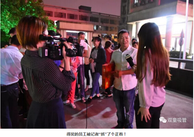 如此熱鬧的活動(dòng)現(xiàn)場也吸引了義烏電視臺(tái)的記者,員工們也被記者“抓”了個(gè)正著,看來,“雙童”人又要出名啦!