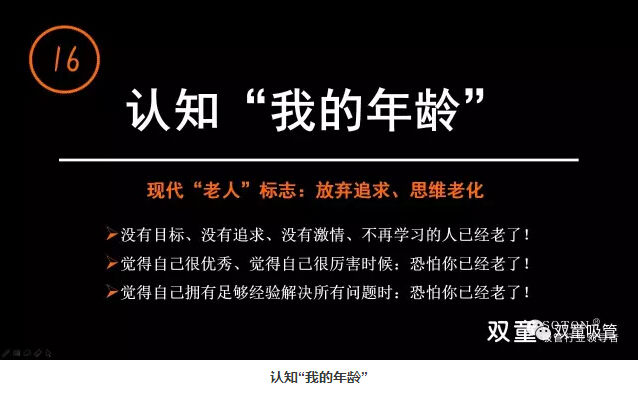 在面對這個瞬息萬變的現代信息社會時,大家都充滿了緊迫感和進取心,意識到沒有目標、沒有追求、沒有激情,還覺得覺得自己很厲害用以往的經驗來解決現在的問題時,你就老了!