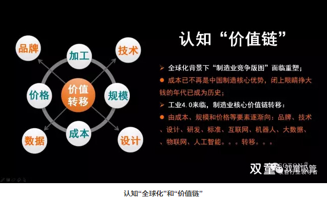 在全球化的背景下,成本不再是制造業(yè)的核心優(yōu)勢。企業(yè)必須面對時代的不斷變化,產業(yè)發(fā)展“棲”水草而居,中國制造商業(yè)競爭“價值鏈”轉移逐漸從“規(guī)模型”向“價值型”轉變。企業(yè)經營“核心價值鏈”轉移,由成本、價格、設備、產品等要素逐漸轉向品牌、渠道、標準、研發(fā)、數據、互聯網…… 傳統業(yè)主杯具時代已經來臨:經驗逐漸成為毒藥!