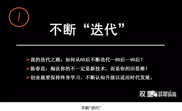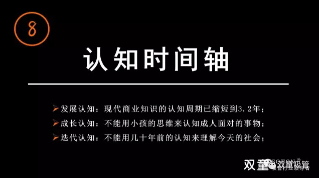現代商業(yè)知識的認知周期已縮短到3.2年,我們不能用小孩的思維來認知成人面對的事物,更不能用幾十年前的認知來理解今天的社會。每個人的成長伴隨著不斷的否定,在認知、糾錯、不斷改變下實現自我成長?!皠?chuàng)業(yè)者”最應該有“時間軸”的概念,需要擁有自我蛻變的能力,否則你就很難成長!