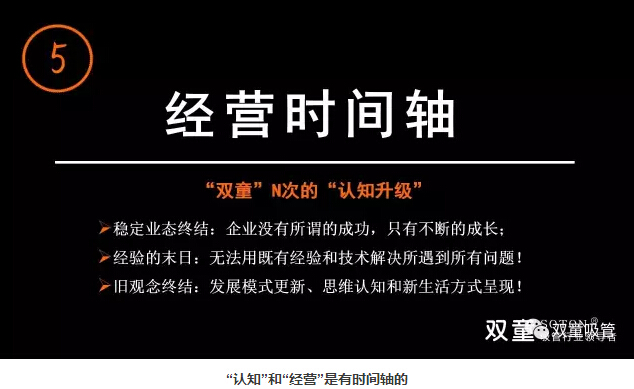 樓仲平也用“雙童”的發(fā)展史告訴大家經營也是有時間軸的,會遇到各種瓶頸和每個階段的“天花板”。企業(yè)沒有所謂的成功,只有不斷的成長,我們無法用既有經驗和技術解決所遇到所有問題!