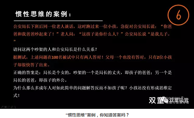 據測試,上述問題在100名被試中只有兩人答對!父母一個也沒有答對,只有2位小孩子卻很快答了出來。