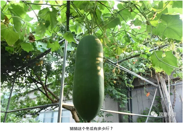 再來(lái)看看這一個(gè),長(zhǎng)得“五大三粗”都快壓彎了枝架,這么大的冬瓜大家都爭(zhēng)著和它合影呢!猜猜有多重呀?