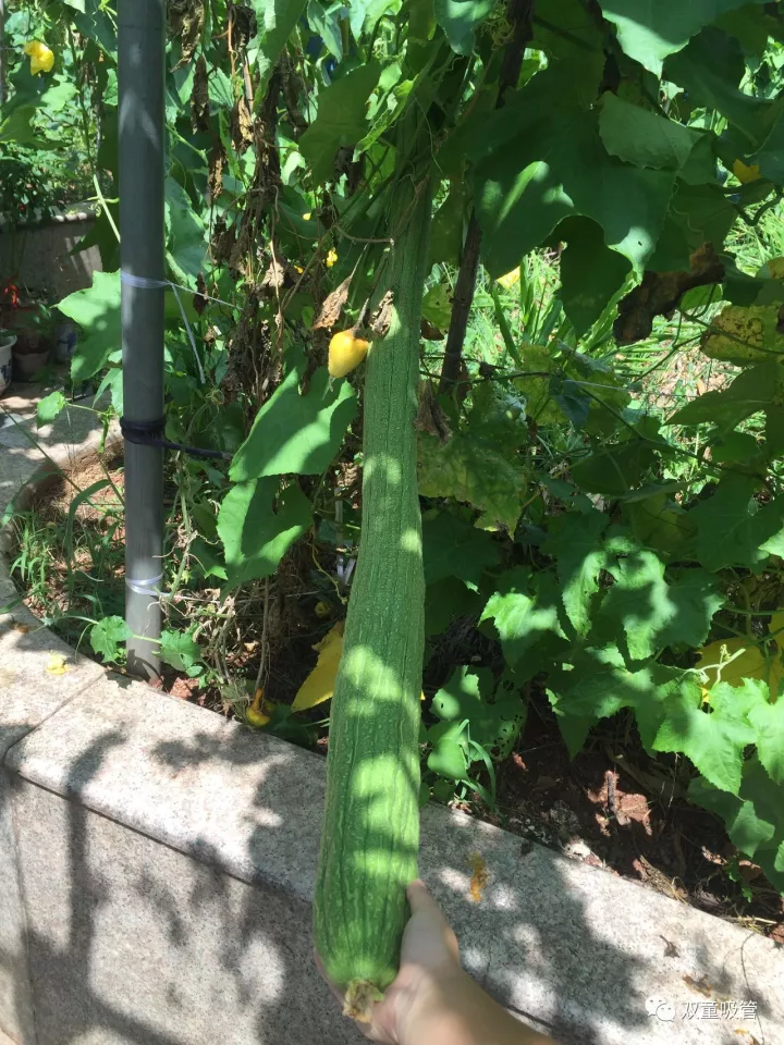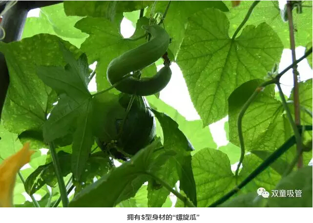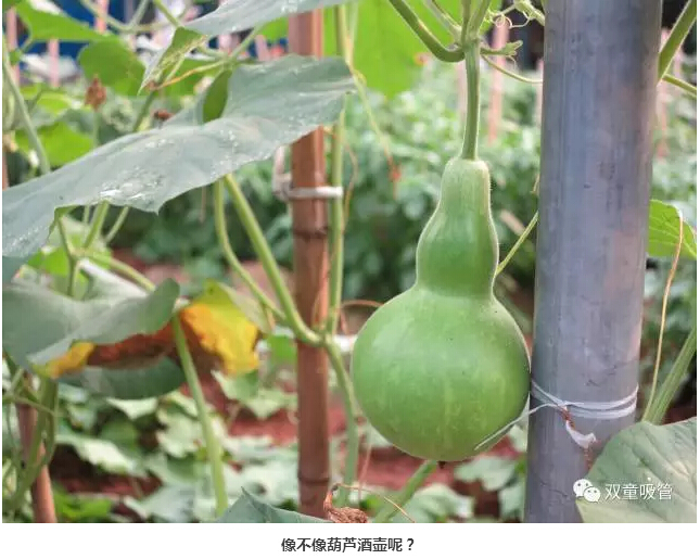 接下來(lái)這個(gè)瓜可是堪稱(chēng)藝術(shù)品呢!一般的葫蘆瓜都是直筒的,而“雙童”菜園里的葫蘆瓜居然長(zhǎng)成了一個(gè)名副其實(shí)的葫蘆瓜。吸管君直言,把瓜仁挖了,都可以當(dāng)酒壺啦!