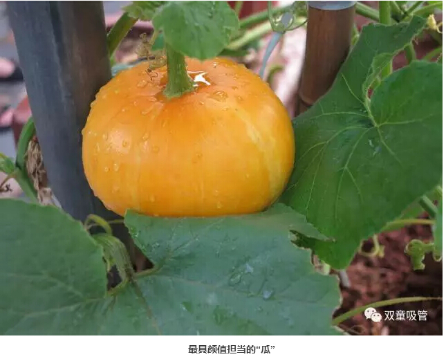 菜園里也有很多“調(diào)皮”的瓜果蔬菜,瞧!這張南瓜可真是不走尋常路,吸管妞是給它掰回去?還是摘下來(lái)或者是一直這么吊著呢?