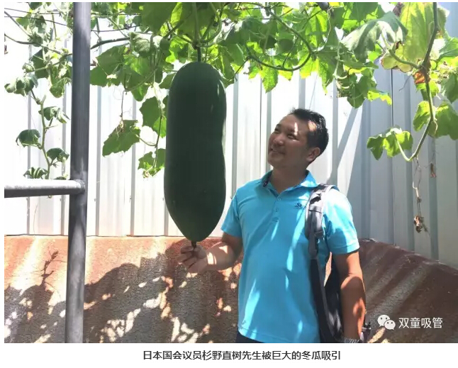 菜園子里還有很多“三生有幸”的瓜,不信!瞧,菜園里的這幾個(gè)冬瓜可是受到了日本議會(huì)議員杉野直樹(shù)先生、老撾工貿(mào)部部長(zhǎng)開(kāi)瑪妮·奔舍那的青睞,還留下了合影,你們說(shuō)這些是不是“三生有幸”的瓜呢?