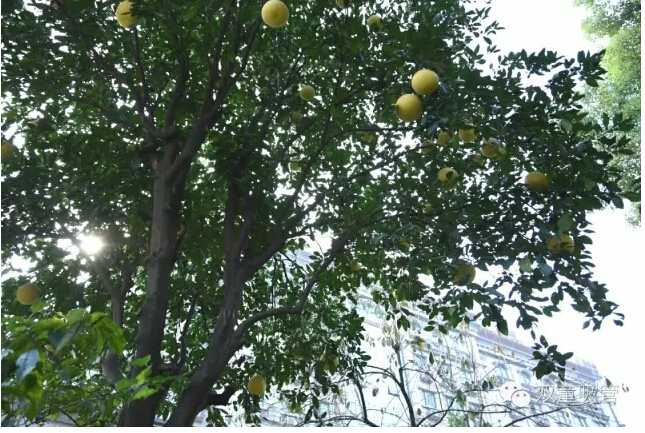 已經(jīng)轉(zhuǎn)黃的大柚子高高低低的掛滿了枝頭,和青綠的葉子應(yīng)和著,煞是好看呢!從樹下往上看,像不像星星掛滿天的趕腳?吸管妞還發(fā)現(xiàn),有幾個柚子長得非常的低,真的可以用“唾手可得”來形容,可是……竟然沒有吃貨來摘?這是怎么回事呢?