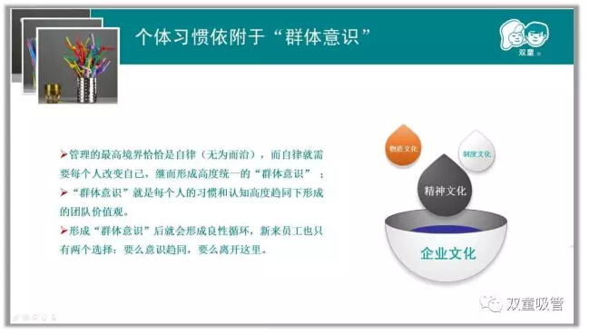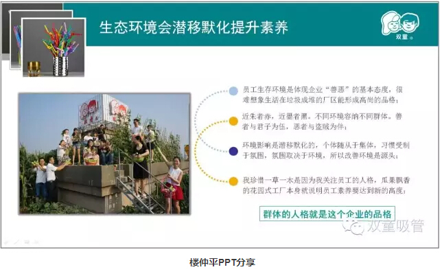 除此之外,屋頂菜園、廠區(qū)的綠化、甚至是隨處可見的鏡框標語都在潛移默化地影響著員工,瓜果飄香的花園式工廠本身就說明員工素養(yǎng)要達到新的高度。通過這樣的方式,員工長時間自律提升后就形成了自身的行為習(xí)慣,在改善工作生活的同時形成精細化管理氛圍。所以,即使沒有明令禁止,“雙童”人也非常自覺不會去采摘柚子,更不會破壞廠區(qū)里的一草一木!