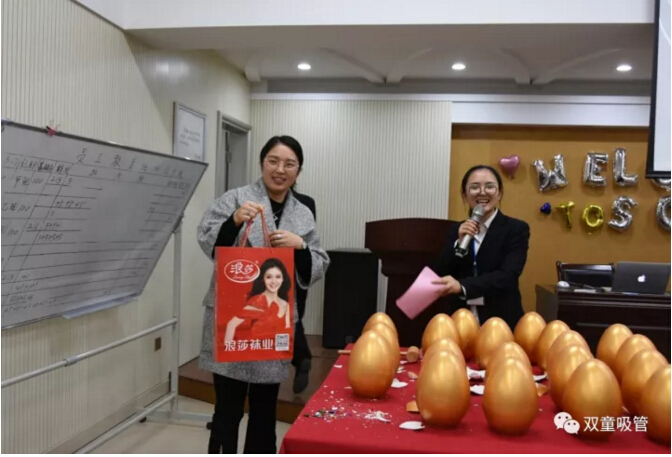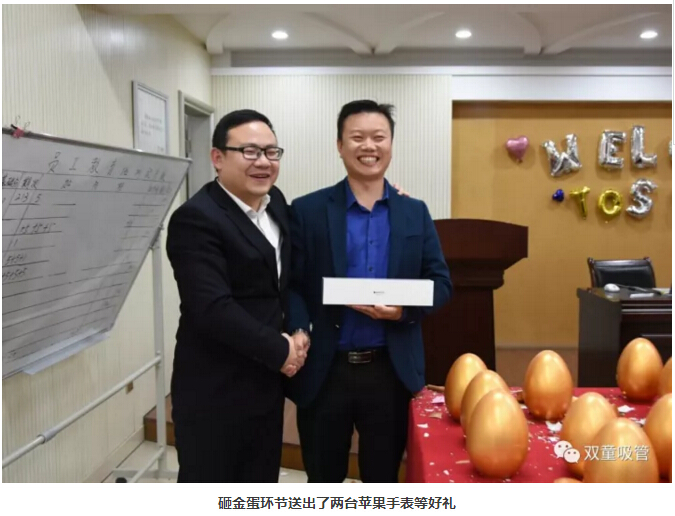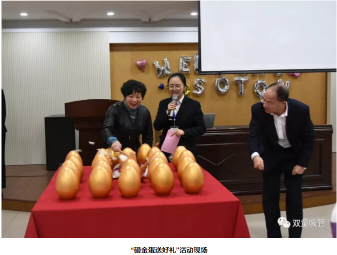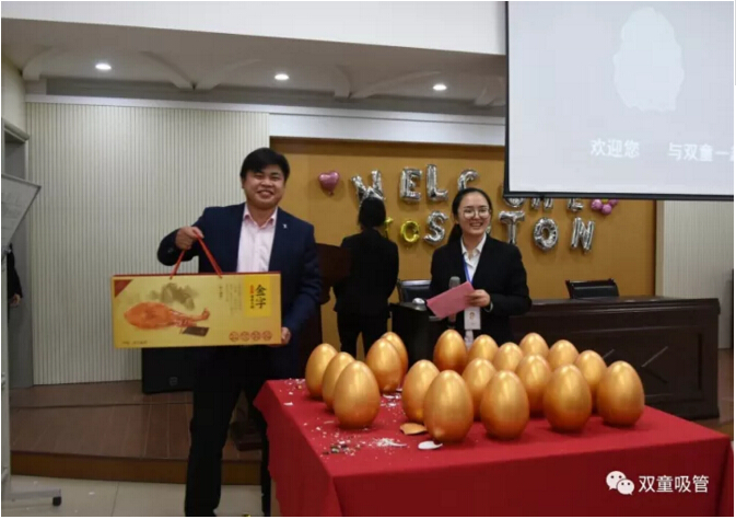 接下來,我們也舉辦了“砸金蛋送好禮”活動!隨著一個個金蛋被砸開,各種好禮也隨著禮花“破殼而出”!蘋果手表,金華火腿禮盒,浪莎襪禮盒…… 在拿到一件件豐厚禮品后大家笑得都快合不攏嘴了!