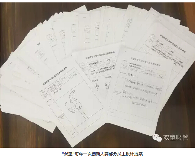 除此之外,“雙童”動員內(nèi)部全體員工進(jìn)行思維創(chuàng)新,在公司舉行吸管創(chuàng)新大賽。在大賽中,員工們提交的作品在外觀上的創(chuàng)新、功能及使用方式創(chuàng)新都十分吸人眼球,也進(jìn)一步推動了企業(yè)的創(chuàng)新工作。另一方面,在內(nèi)部協(xié)作取得一定成果后,“雙童”陸續(xù)與浙江師范大學(xué)、北京服裝大學(xué)、中國塑料工業(yè)研究所等機構(gòu)建立長期合作,從而逐步了形成規(guī)范的創(chuàng)意引導(dǎo)、征集、篩選、評價、激勵、開發(fā)和商業(yè)推廣等創(chuàng)新工作機制,逐漸形成了規(guī)范的研發(fā)性低成本創(chuàng)新之路!