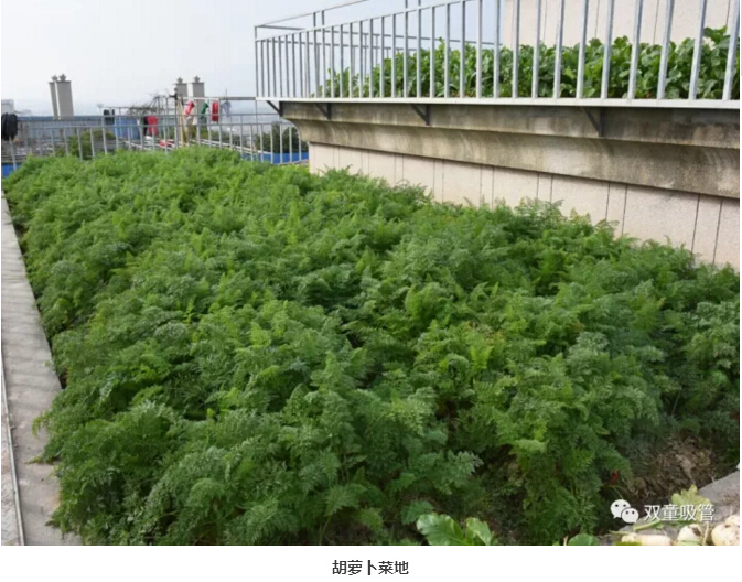 放眼望去,屋頂菜園里的蘿卜菜地郁郁蔥蔥一片,茂盛的葉子把蘿卜們都擋住了,但隱隱約約還能看到幾個蘿卜探著腦袋出來“觀望”!