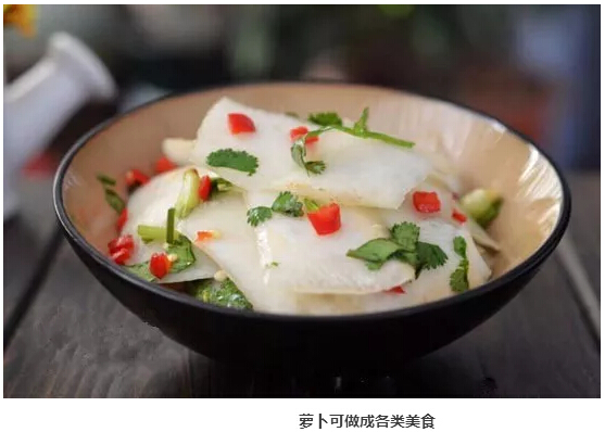 冬天吃蘿卜具有促進消化,增強食欲,加快胃腸蠕動和止咳化痰的作用。白蘿卜能清涼去火、促進消化、提高人體免疫力、抗癌,還能提供給人體所必須的維生素。而胡蘿卜則有胡蘿卜含有胡蘿卜素,防止血管硬化,降低血壓及減少心臟病的同時,還有益肝明目,美麗容顏,預防感冒等功效!