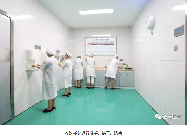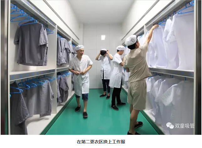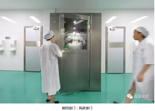 在“雙童”,每位員工在進入車間前,都要按照規(guī)范進行消毒防護措施,過五道門六道關(guān)卡才能進入車間工作: