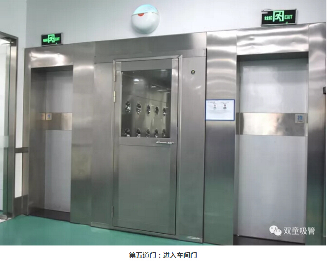 5.員工們風(fēng)淋后經(jīng)過第五道車間入口門,進入車間進行生產(chǎn)工作。