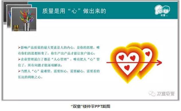 有了如此整潔干凈的生產(chǎn)環(huán)境,“雙童”生產(chǎn)的吸管自然支支見品!如今,“雙童”生產(chǎn)的吸管不僅有著高品質(zhì),還突破了常人對“吸管”產(chǎn)品的認(rèn)知!就拿愛心吸管來說,由14個配件組成,安裝有液體止回流裝置,也避免了兩個人之間的細(xì)菌交叉感染。目前為止,“雙童”擁有了100多項專利,掌握了全球吸管行業(yè)近2/3的專利,并且主導(dǎo)著全球吸管行業(yè)的行業(yè)標(biāo)準(zhǔn)制定。