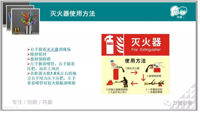 除此之外,李講師也從日常防火常識(shí)、如何撲救初期火災(zāi)以及火場(chǎng)逃生自救的方法等方面對(duì)員工們進(jìn)行重點(diǎn)培訓(xùn),向員工講解滅火器等消防器材的功能及使用方法,讓大家增強(qiáng)安全意識(shí)!