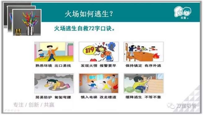 發(fā)生火災(zāi)時(shí)第一時(shí)間該怎么辦?首先就是要大聲呼喊,并迅速撥打電話“119”向消防部門報(bào)警!以下是李講師所說(shuō)的逃生72字口訣,快記住這72字口訣防患于未然!