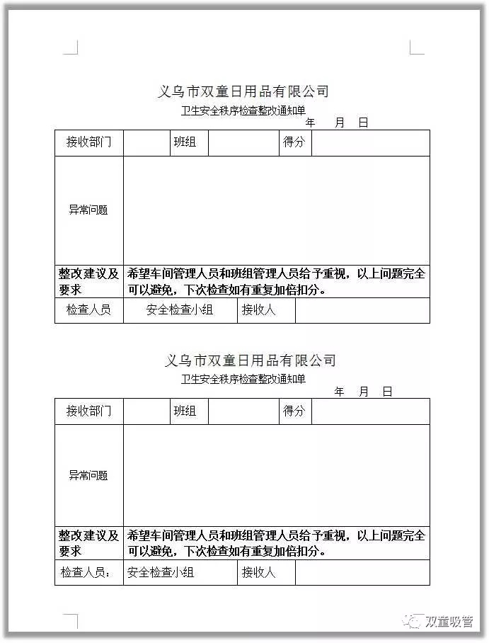 衛(wèi)生安全秩序整改通知單