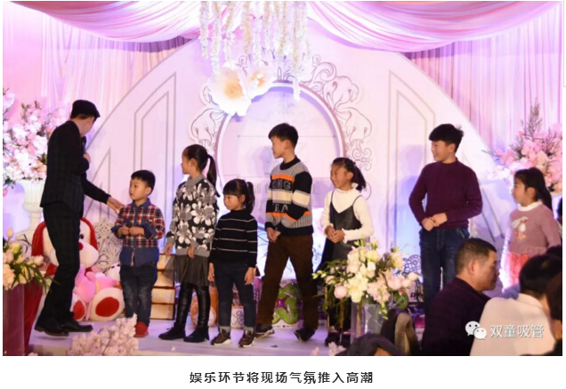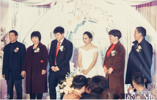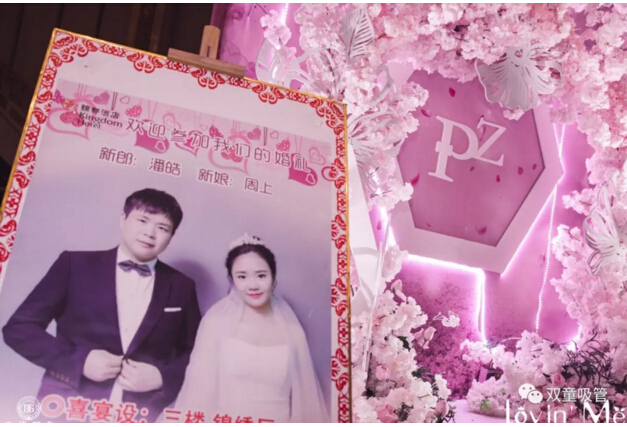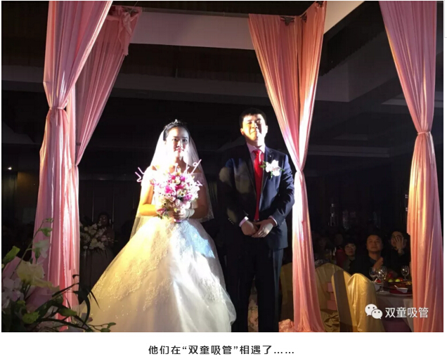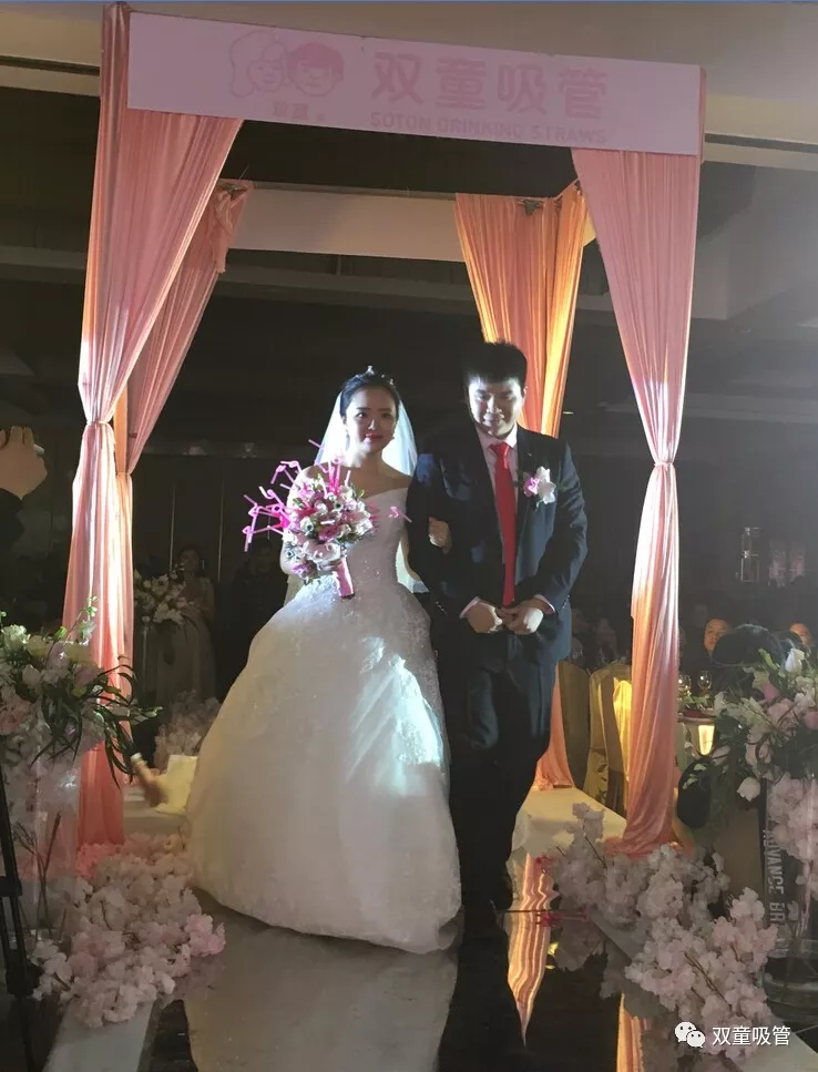 婚禮現(xiàn)場的亭子代表著新人的工作單位——“雙童吸管”