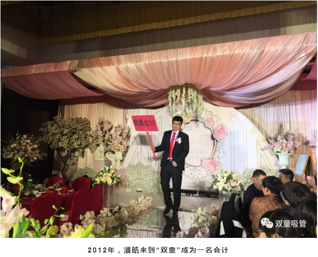 新郎潘皓先生,大學畢業(yè)后入職“雙童”,一直在公司里從事財務管理工作。他在工作上踏踏實實、任勞任怨,通過自己的努力和積累,已成長為“雙童”最年輕的經理人之一。