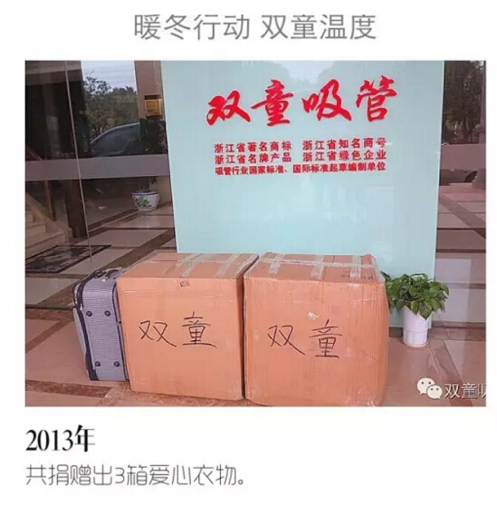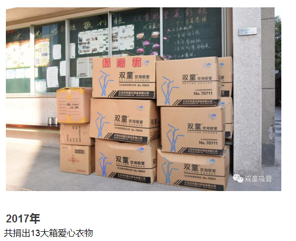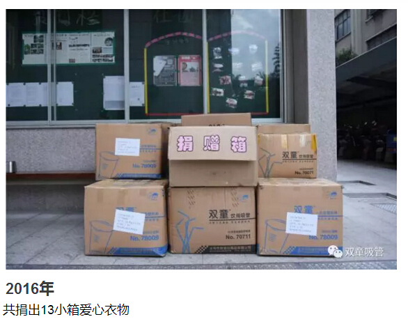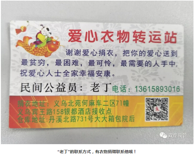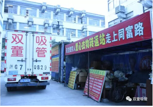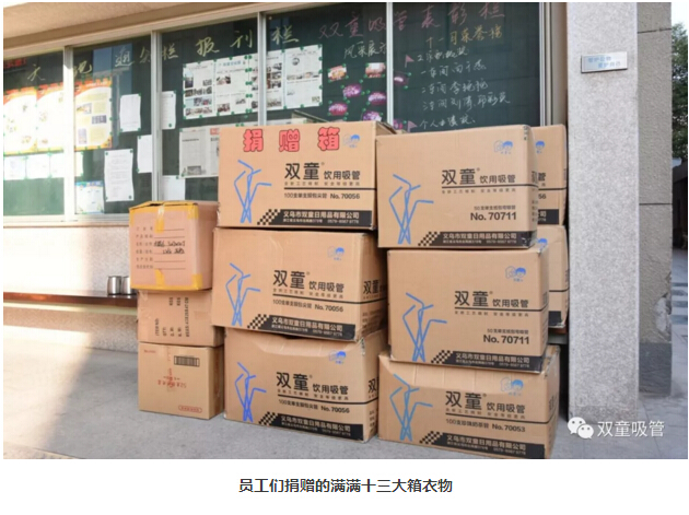 前幾天,吸管妞也將收拾好的衣物送至“義烏十大好人”老丁的衣物捐贈處。由于衣物太多,我們用了“雙童”的廠車運輸,順便也給我們自己做了宣傳,哈哈!!老丁表示:十分感謝“雙童”多年來堅持舉辦暖冬活動,也希望有更多的人能夠參與到此項活動中來!