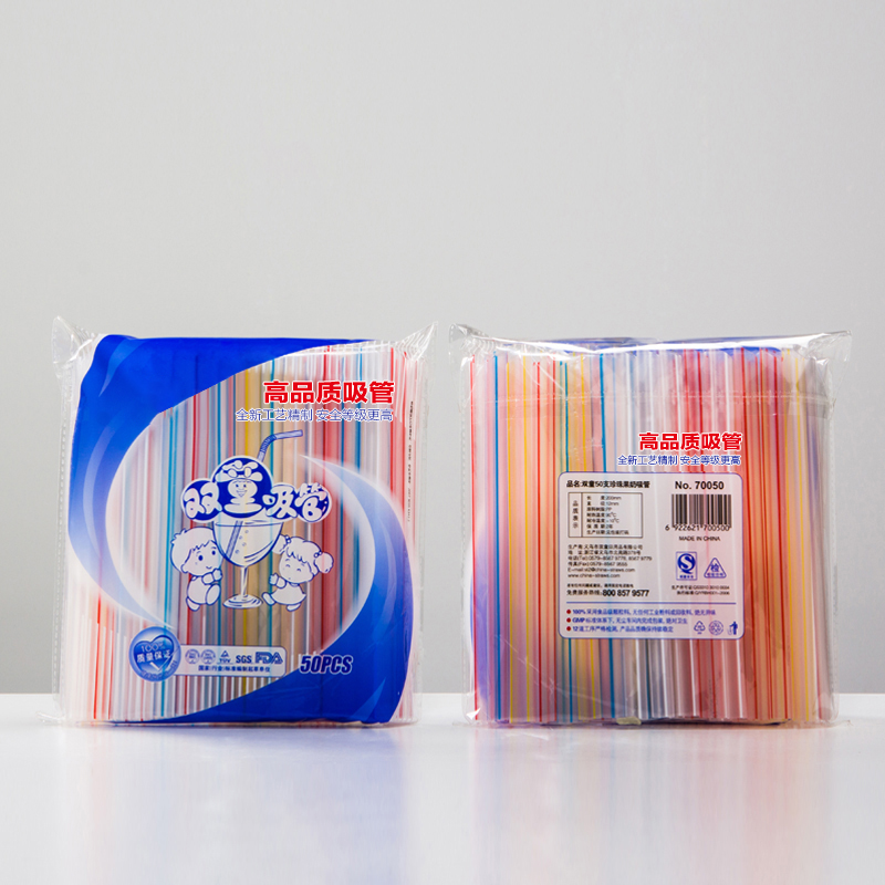 70050雙童50支透明彩條色珍珠奶茶吸管
